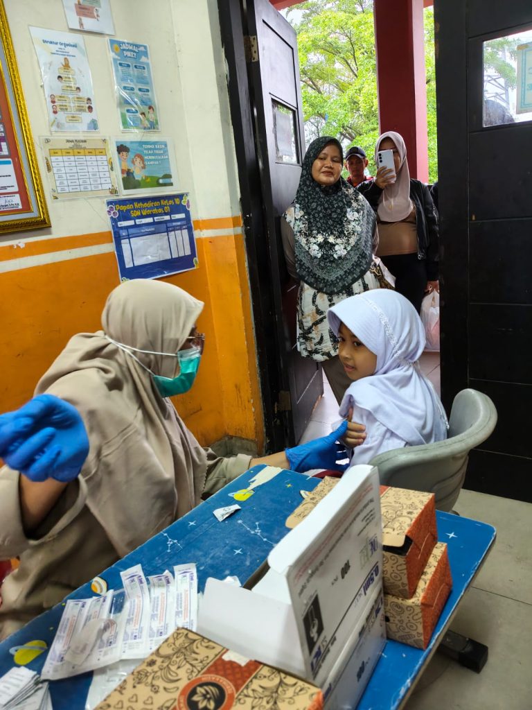 Siswa Kelas 1 Mendapatkan imunisasi DT (Difteri Tetanus) sebagai perlindungan terhadap penyakit difteri dan tetanus yang dapat membahayakan kesehatan anak.