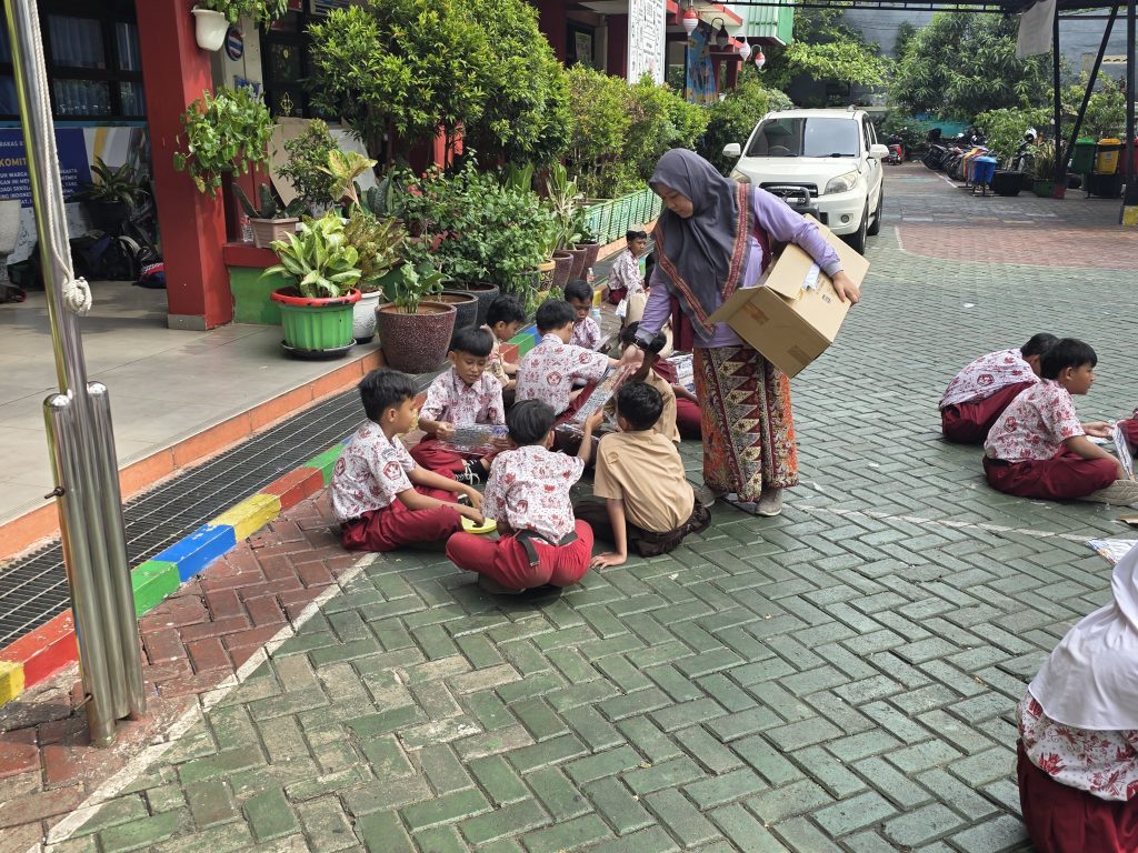 Setelah sesi pemutaran video selesai, para guru dengan penuh semangat membagikan paket Gunpla yang belum dirakit kepada setiap siswa. Wajah-wajah ceria dan penuh antusiasme terlihat jelas saat anak-anak menerima paket Gunpla mereka masing-masing. Moment ini menjadi awal dari petualangan kreativitas mereka.